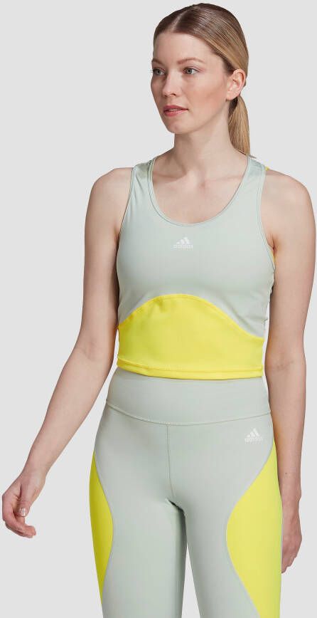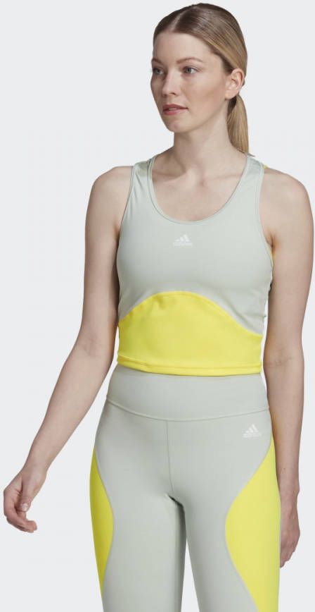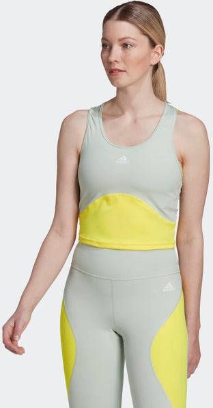 adidas aeroready hiit crop sporttanktop grijs/geel dames