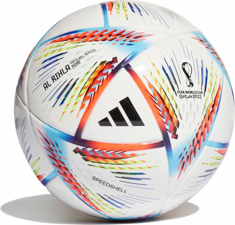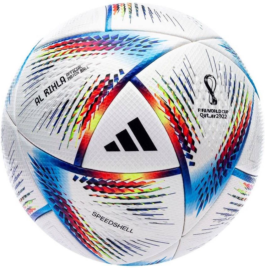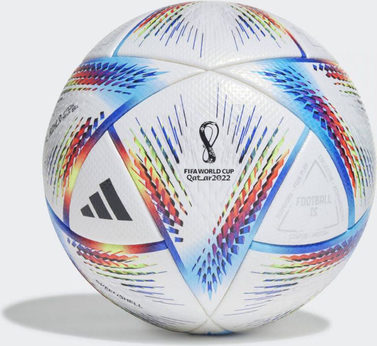 - Officiële wedstrijdbal voor het WK 2022, de eerste keer dat dit voetbaltoernooi dat in de winter wordt gehouden Rihla is het Arabische woord voor een reis of de reisbeschrijving die het documenteert Gemaakt met 20 panelen gevormd met inspiratie uit de vele zandduinen van Qatar De kleurencombinatie komt van een combinatie van Qatar-vlaggen en de traditionele witte Arabische kleding Met een gloednieuwe innovatie in Speedshell die tot doel heeft de snelheid en rotatie van de bal te verhogen, waardoor een uitzonderlijke aerodynamica en een perfect schot wordt bereikt De bal is voorzien van het FIFA QUALITY PRO-merkteken, wat aangeeft dat de bal een reeks officiële tests heeft doorstaan, onder de meest veeleisende omstandigheden Het oppervlak is thermisch verlijmd en heeft dus geen naden, wat zorgt voor een stabiele vlotter, een voorspelbaar traject en een lagere wateropname De buitenlaag, het oppervlak en de rubberen blaas bestaan uit hoogwaardige materialen, zodat.