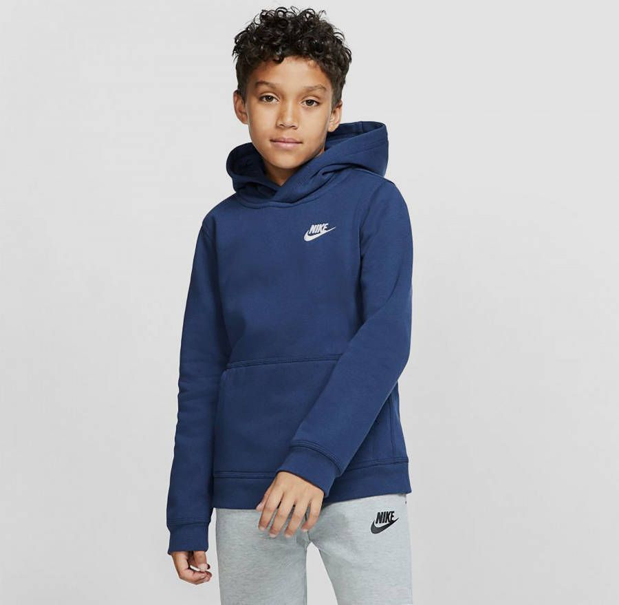 Met de blauwe Sportswear Club Pullover trui van Nike ben je ervan gegarandeerd dat jouw kind de winter warm doorkomt. De jongenshoodie is gemaakt van warm fleece dat altijd van pas komt tijdens de koudere dagen. Dankzij de capuchon en de buidelzak is het zelfs mogelijk om de handen en het hoofd extra te verwarmen. Of je kind de sweater nou draagt als extra laagje of op zichzelf aantrekt, deze capuchontrui zorgt hoe dan ook dat de kou buiten de deur blijft tijdens sportieve of alledaagse activiteiten.- Materiaal body: 80% Katoen / 20% Polyester