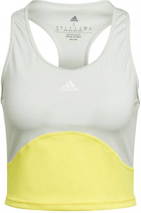 Met de adidas AEROREADY HIIT Crop sporttop voor dames haal jij het beste uit je HIIT-training. De grijs met gele tanktop heeft een stoere cropped fit en is gemaakt van zacht materiaal waardoor de tanktop comfortabel aansluit op je lichaam. Deze sporttop is niet alleen stijlvol, maar ook nog eens zweetafvoerend dankzij het bekende AEROREADY-materiaal: zo blijf je moeiteloos comfortabel en droog, ook na een set burpees.- Materiaal: 85% Gerecycled polyester / 15% Interlock Elastaan_- Pasvorm: Slim Fit, sluit dicht aan op de huid, maar zit niet te strak_- Kraagvorm: Rond_- Cropped fit_- AEROREADY-technologie: Vochtabsorberend, voor een comfortabel en droog gevoel_- adidas-logo: Op de borst_.