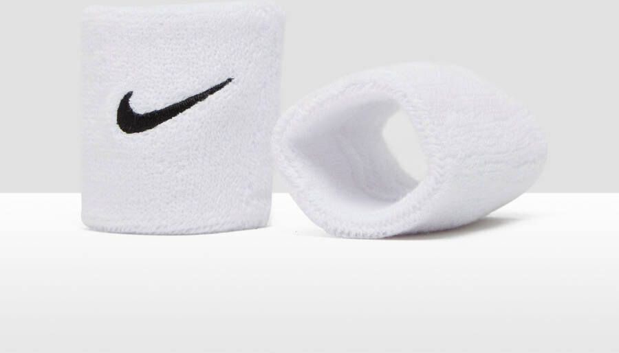 Polsband Swoosh Wristbands van Nike. Het badstof materiaal neemt snel vochtop.