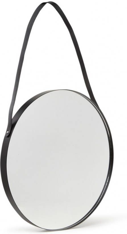 De Balanced wandspiegel van Present Time (Pt.) is een ronde spiegel met een diameter van 47 cm. De spiegel heeft een ophangsysteem van leer en heeft een zwarte rand.