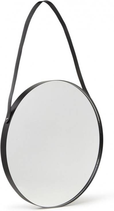 pt, Balanced Spiegel Rond Staal/Leer Ø47 cm Zwart