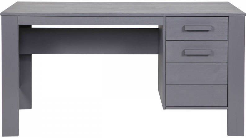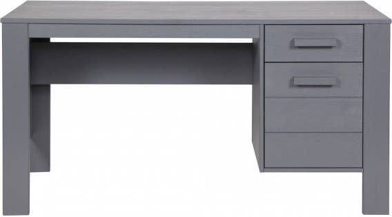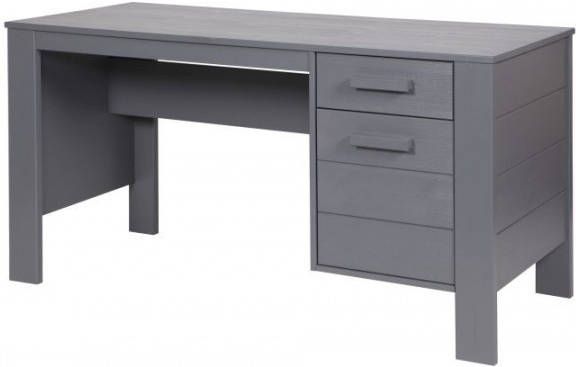 Een stoere touch aan de tienerkamer, logeerkamer of studeerkamer is bureau Dennis. Het ontwerp uit de collectie van WOOOD blinkt uit door zijn tijdloze en elegante vormgeving, die zich aanpast naar iedere interieurstijl. Het meubel is vervaardigd van massief grenenhout in de kleur staalgrijs en afgewerkt met plankeffect in het kastdeurtje. De toevoeging van robuuste handgrepen op het ladefront en kastdeurtje geeft het meubel karakter. De ideale plaats om even helemaal tot rust te komen en je te concentreren op het doen van de administratie of het studeren voor een moeilijk tentamen. En als je klaar bent met je werkzaamheden, dan berg je alles wat je niet meer nodig hebt, op in de lade en het kastje onder het bureaublad.