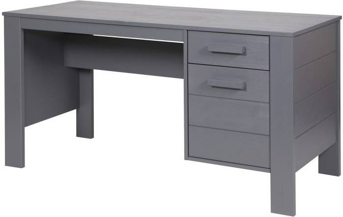 Dit bureau heeft 1 lade en een kastje met een handgreep aan de rechterkant. Het Dennis bureau is onderdeel van de Dennis meubelserie en is uit te breiden met een kledingkast, nachtkastje, bed en bedbank.WOOOD Bureau Dennis Steel Grey