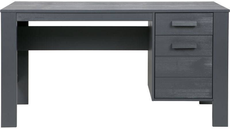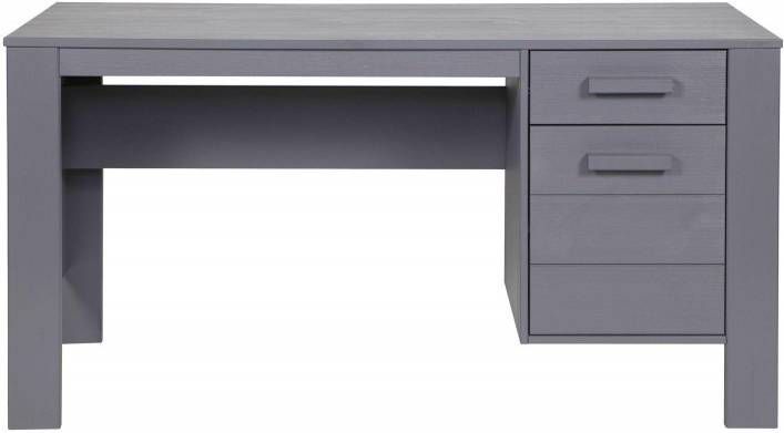 Bureau Dennis grenen staalgrijs van Woood is gemaakt van grenen en heeft een geborstelde afwerking. Het bureau heeft een handige lade met houten greep en is voorzien van solide metalen ladegeleiders. Onder de lade zit een opbergvak.